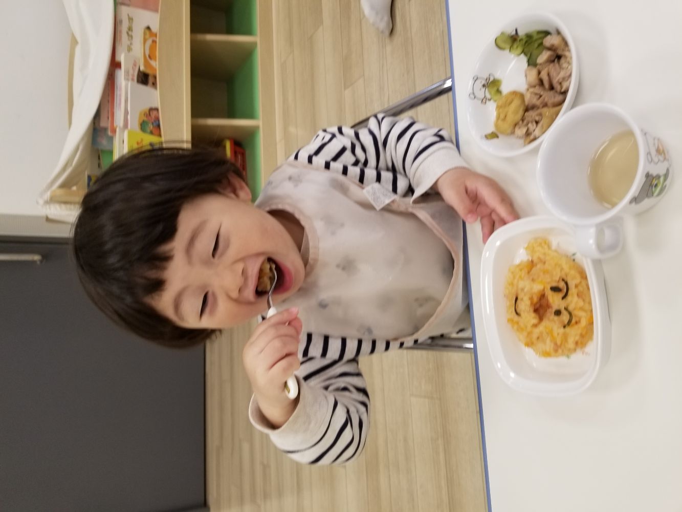 4月17日(金)お楽しみ給食でアンパンマンライスをいただきました💕