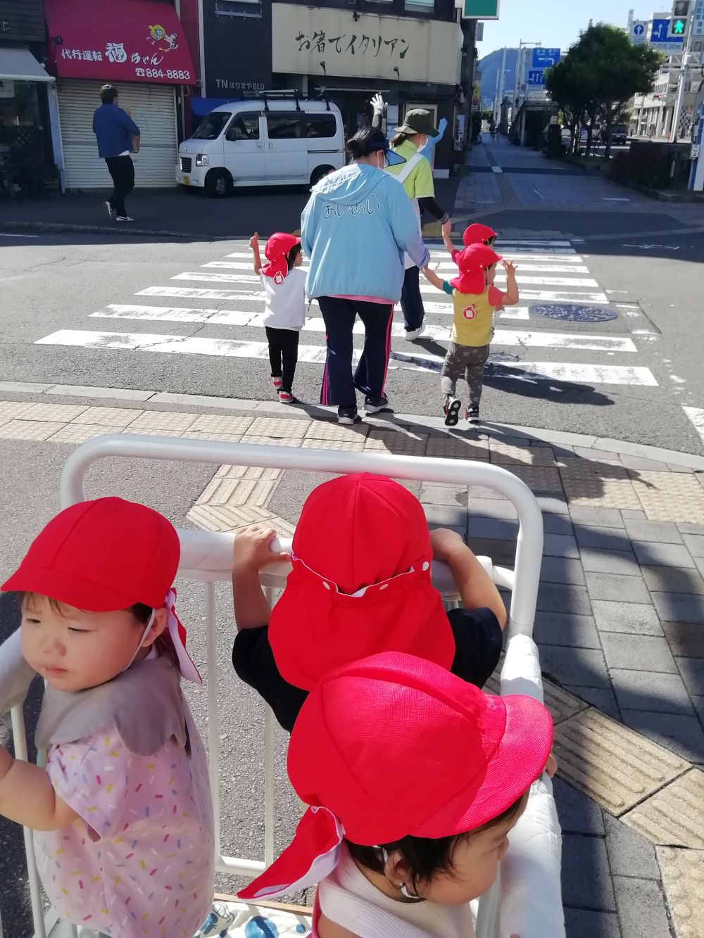 ◎練習後のお散歩ではみんな手をあげて上手に渡ることができました(^^)